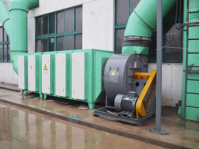 工業(yè)廢氣利用排風(fēng)設(shè)備輸入到本凈化設(shè)備后,凈化設(shè)備運用高能UV紫外線光束及臭氧對工業(yè)廢氣進行協(xié)同分解氧化反應(yīng),使工業(yè)廢氣降解轉(zhuǎn)化成低分子化合物、水和二氧化碳,再通過排風(fēng)管道排出室外。