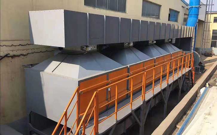 完成解吸脫附后,活性炭吸附箱進(jìn)入待用狀態(tài),待其他活性炭吸附箱接近飽和時,系統(tǒng)再自動切換回來,同時對飽和活性炭吸附箱進(jìn)行解吸脫附,如此循環(huán)工作。***凈化后的潔凈氣體由主排風(fēng)機(jī)排入大氣中。